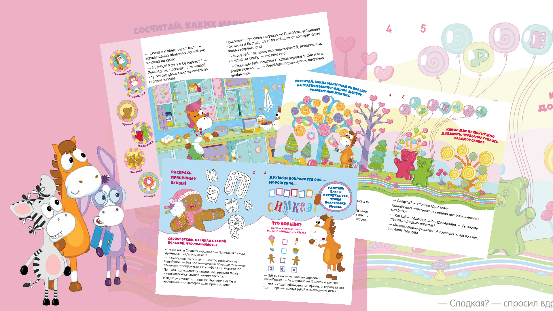 Потом ПониМашка оказалась в мармеладном лесу. По молочной реке она доплыла до леденцового лабиринта, недолго почаёвничала с подружками Ирисками и, в конце концов, оказалась у ворот дворца Сладкой королевы. Что было дальше? Узнаете в свежем номера журнала.