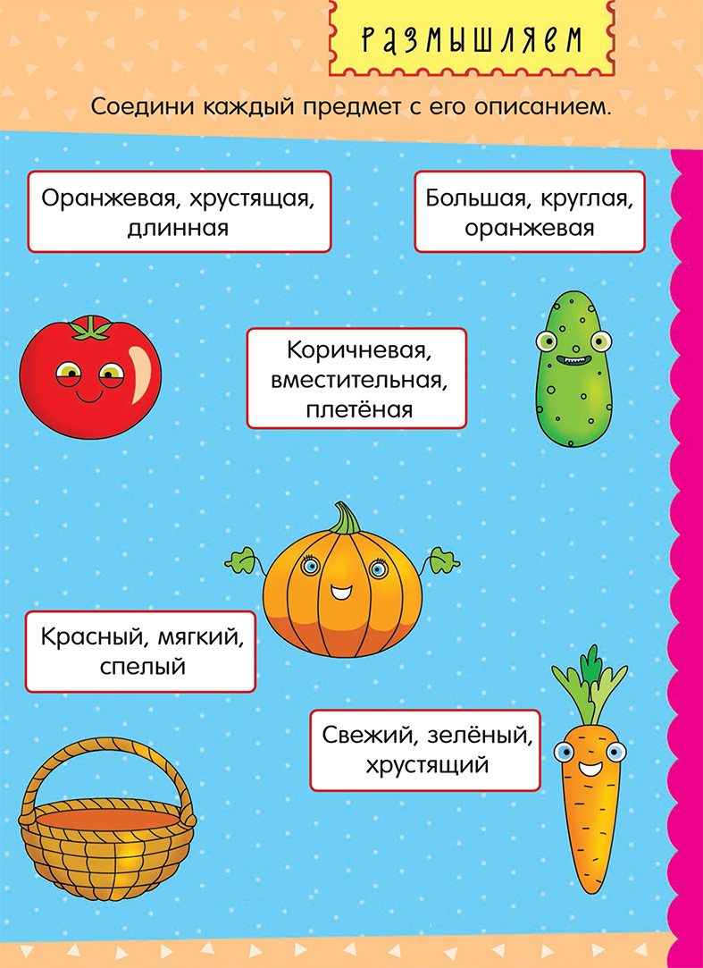 Любые факты запоминаются лучше во время игры. Мы предлагаем поиграть с детьми в овощные ассоциации. Это отличная игра для развития речи и внимания. Посмотрите с ребенком на картинки и соедините описание с нужным овощем.  В эту игру можно играть не только с овощами, таким образом можно описывать любой предмет, героя мультфильма или даже явления. Тот кто угадал ассоциацию - загадываем новое слово. А играть можно в любом месте - и дома, и на улице.