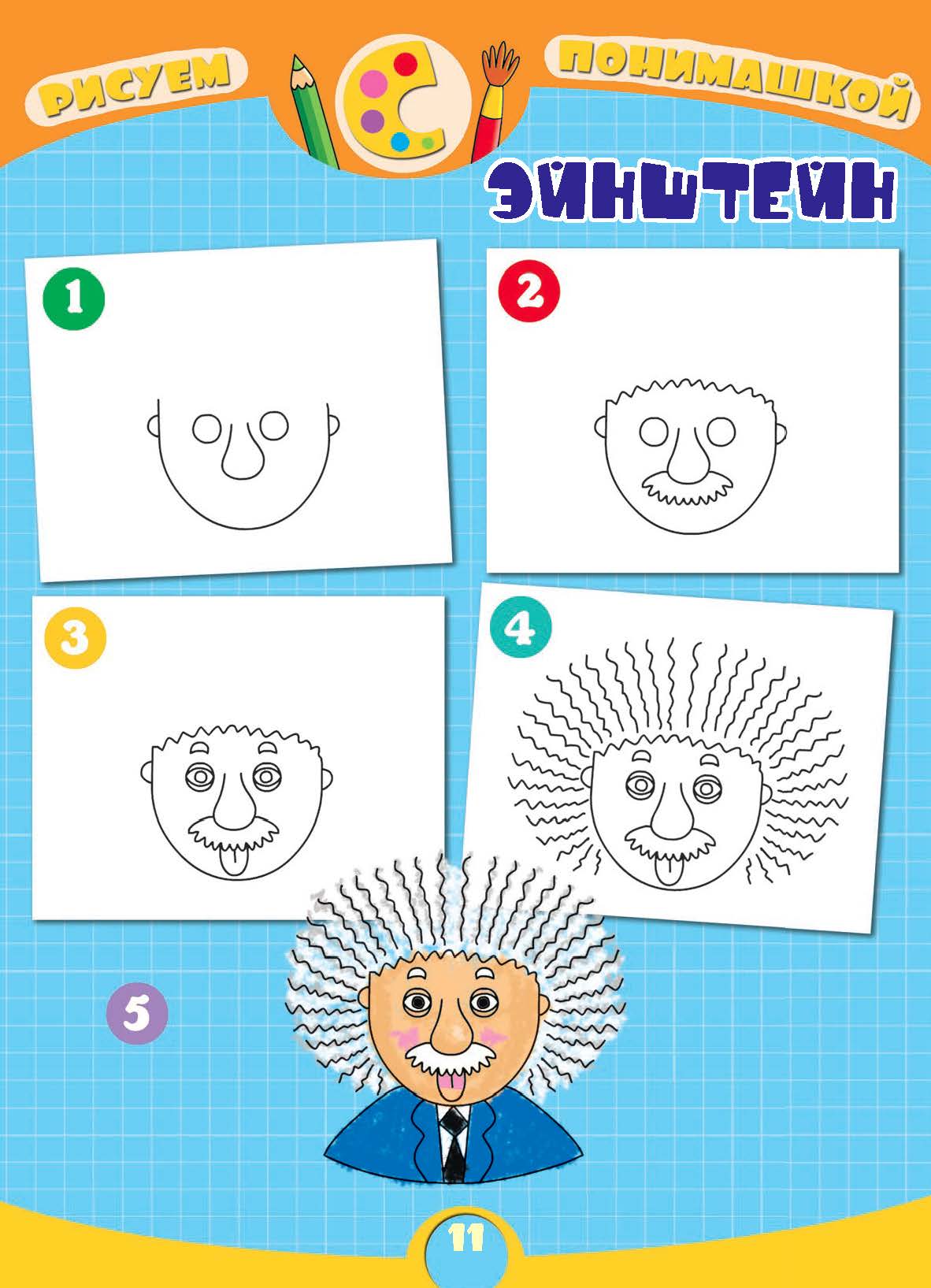 Малыш уже хорошо рисует бабочек и цветы? Давайте отвлечёмся от флоры и фауны и нарисуем самого Альберта Эйнштейна!