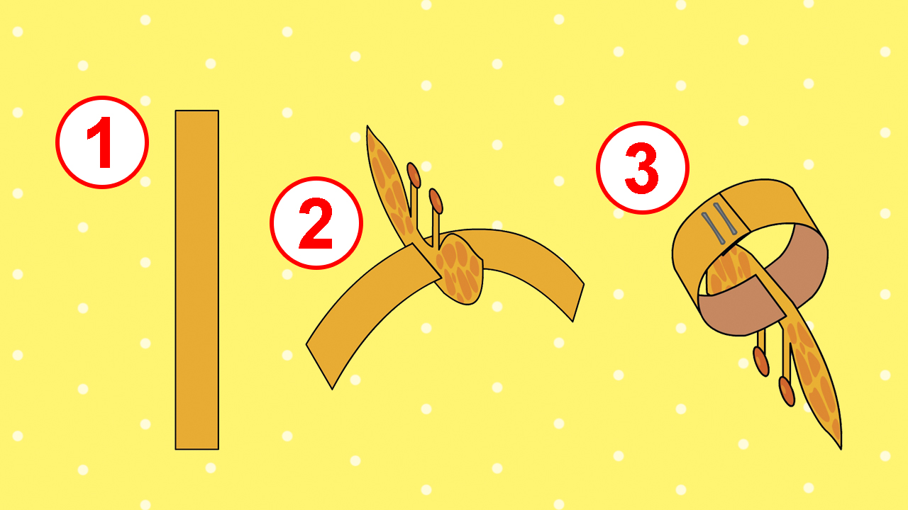 Наденьте на руку, как показано на картинке, и соедините концы.