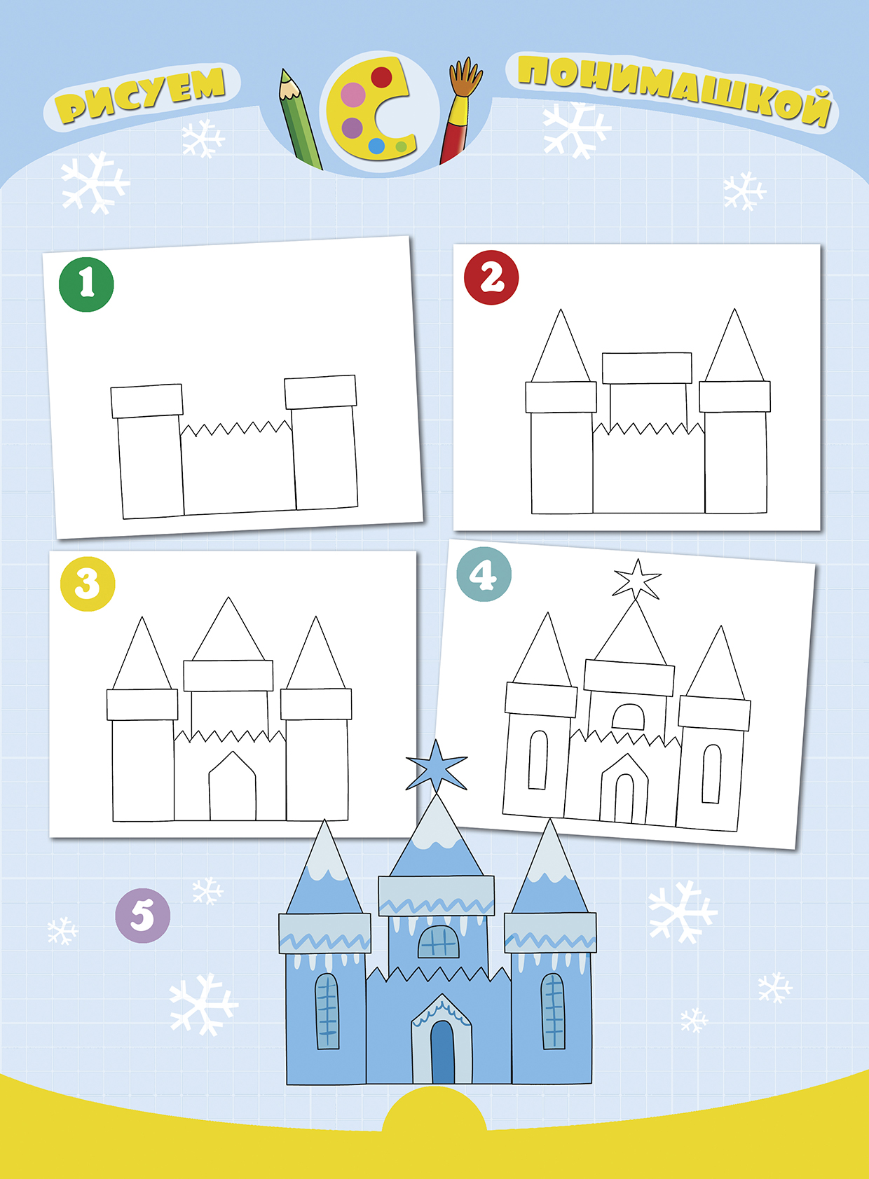 Инструкция, как нарисовать ледяной замок.