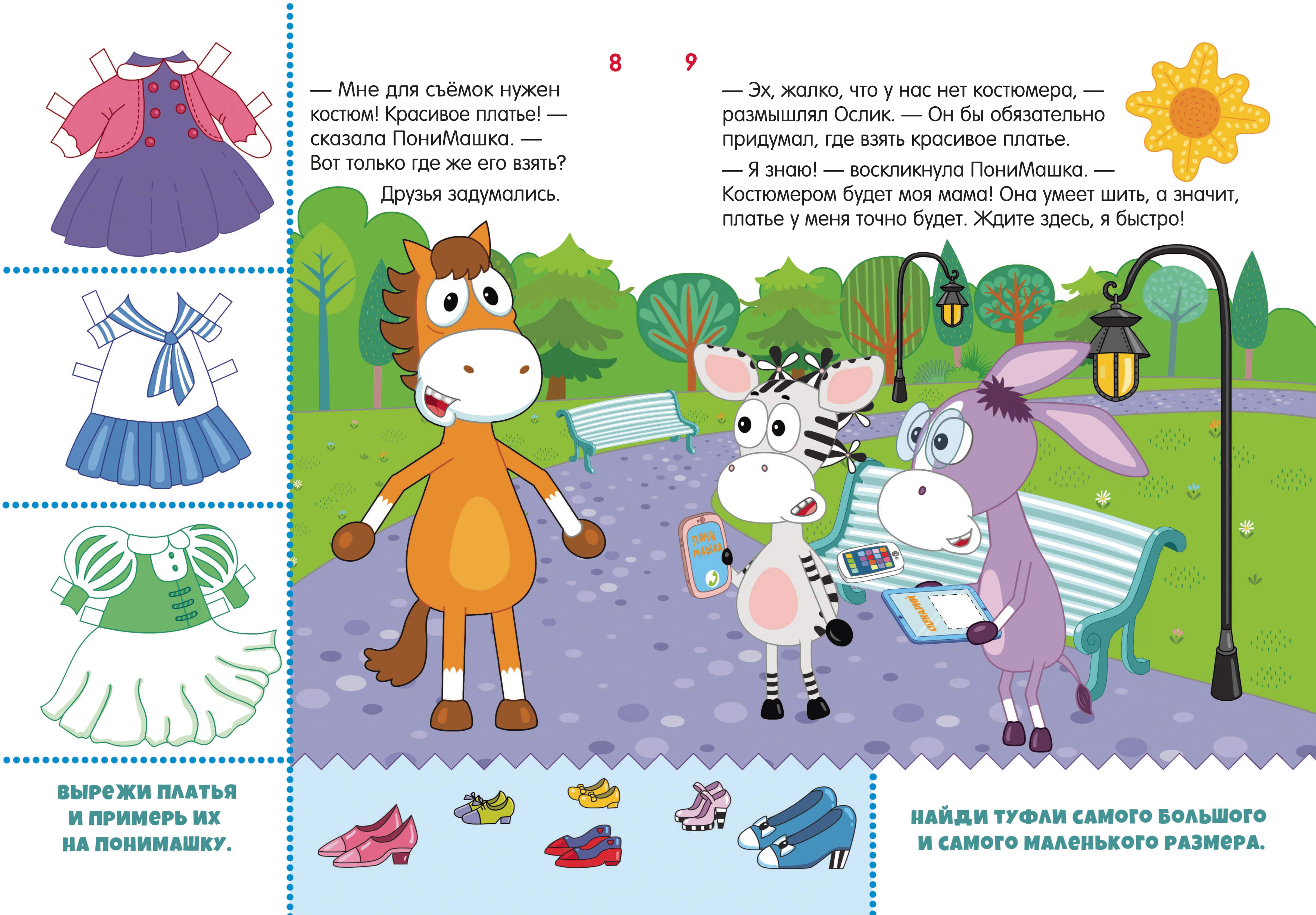 ПониМашка решила сниматься в кино. Но для этого нужно подобрать самый лучший костюм. Помогите ребёнку вырезать детали одежды, чтобы он не поранился. Расскажите, как актер меняет образы. Рассмотрите с малышом костюмы и дайте ему выбрать тот, который больше понравится. Можно разыграть с фигуркой какую-нибудь сценку, придумать свою историю. Почувствуйте себя настоящим режиссером кино!
